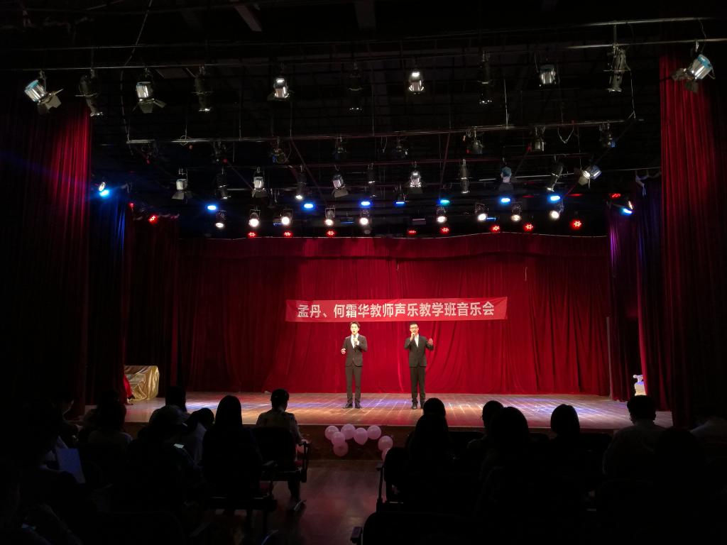 2018年4月26日晚,孟丹、何霜华声乐教学班音乐会在艺术楼黑匣子小剧场举办。